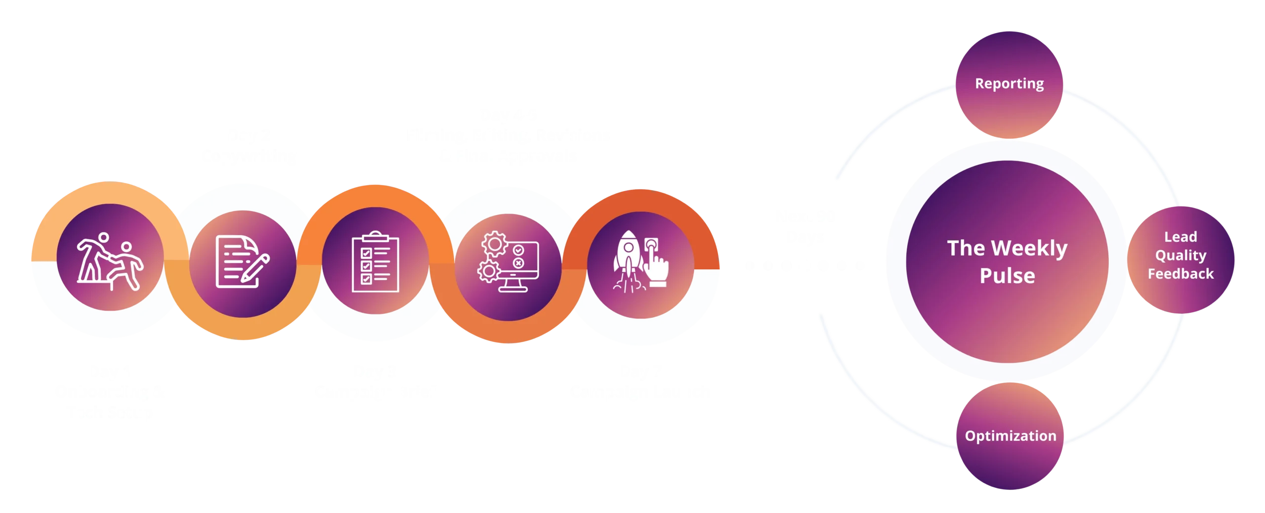 We start by testing creatives at a low cost to ensure we launch with proven, data-driven elements. The first few weeks are all about building a solid foundation that makes launching your campaign a breeze.